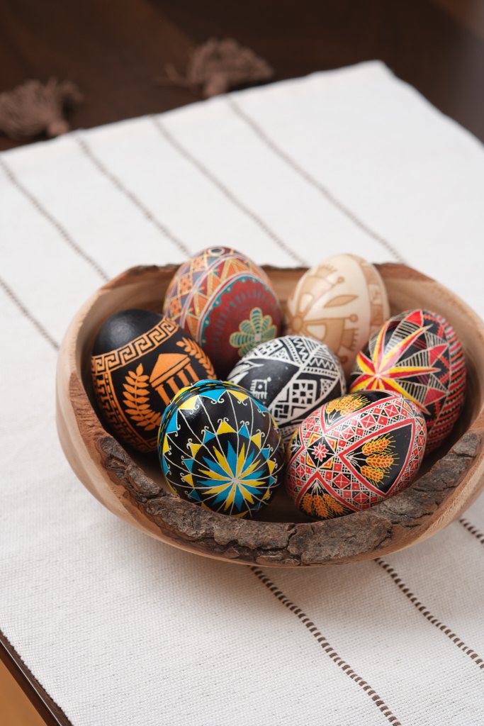 Following the first invasion of Ukraine in 2014 and the Revolution of Dignity, I found myself craving a deeper connection with my heritage. I cobbled together all of the supplies that I could in my dorm room that first Easter, and focused all of my attention and anxiety on drawing wobbly wax lines on eggs from the campus convenience store. I have decorated eggs every year since.